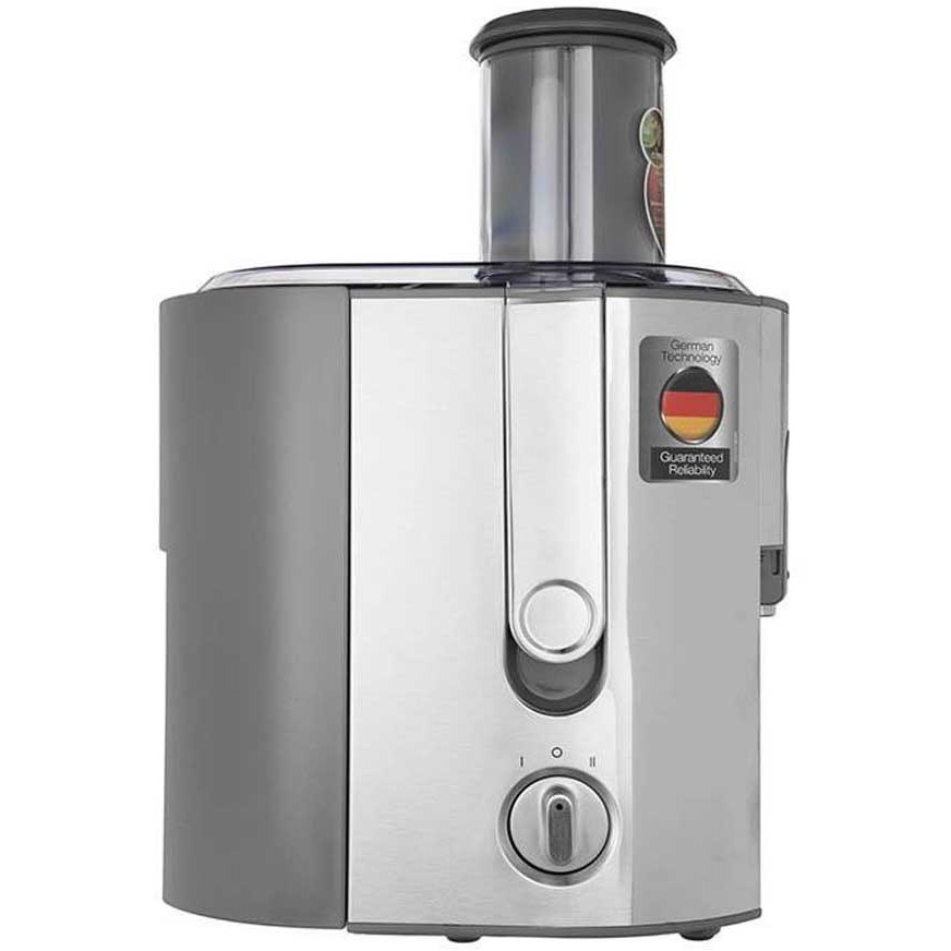 - دهانه ورودی عریض: یکی از ویژگیهای برجسته این مدل، دهانه ورودی ۷۵ میلیمتری آن است. این دهانه بزرگ به کاربر اجازه میدهد تا سیب کامل یا میوههای بزرگتر را بدون نیاز به برش اولیه وارد دستگاه کند که این موضوع در صرفهجویی زمان بسیار مؤثر است.