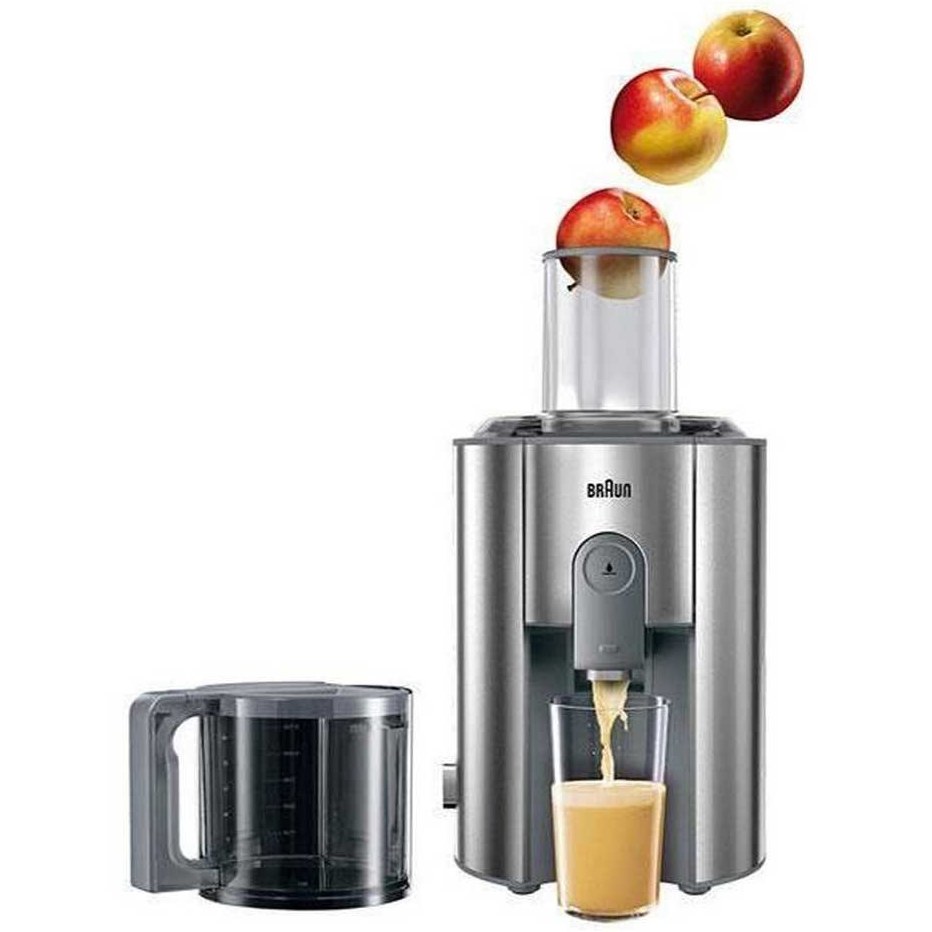 آبمیوه گیری براون مدل J700 تک کاره با موتور 1000 وات، 2 تنظیم سرعت و بدنه استیل. دارای دهانه ورودی ۷۵ میلیمتری برای سیب کامل، سیستم ضد چکه و قطعات قابل شستشو در ماشین ظرفشویی.