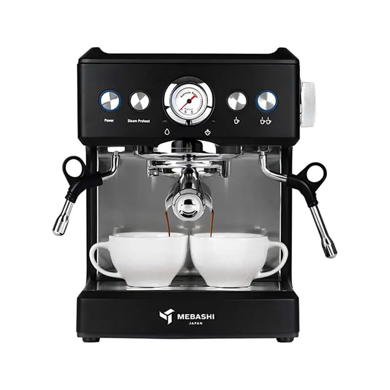اسپرسوساز مباشی 2051، 20 بار و 1350 وات. مخزن 2.7 لیتری، دارای دکمههای اتوماتیک تک و دوبل و گرم کن فنجان.