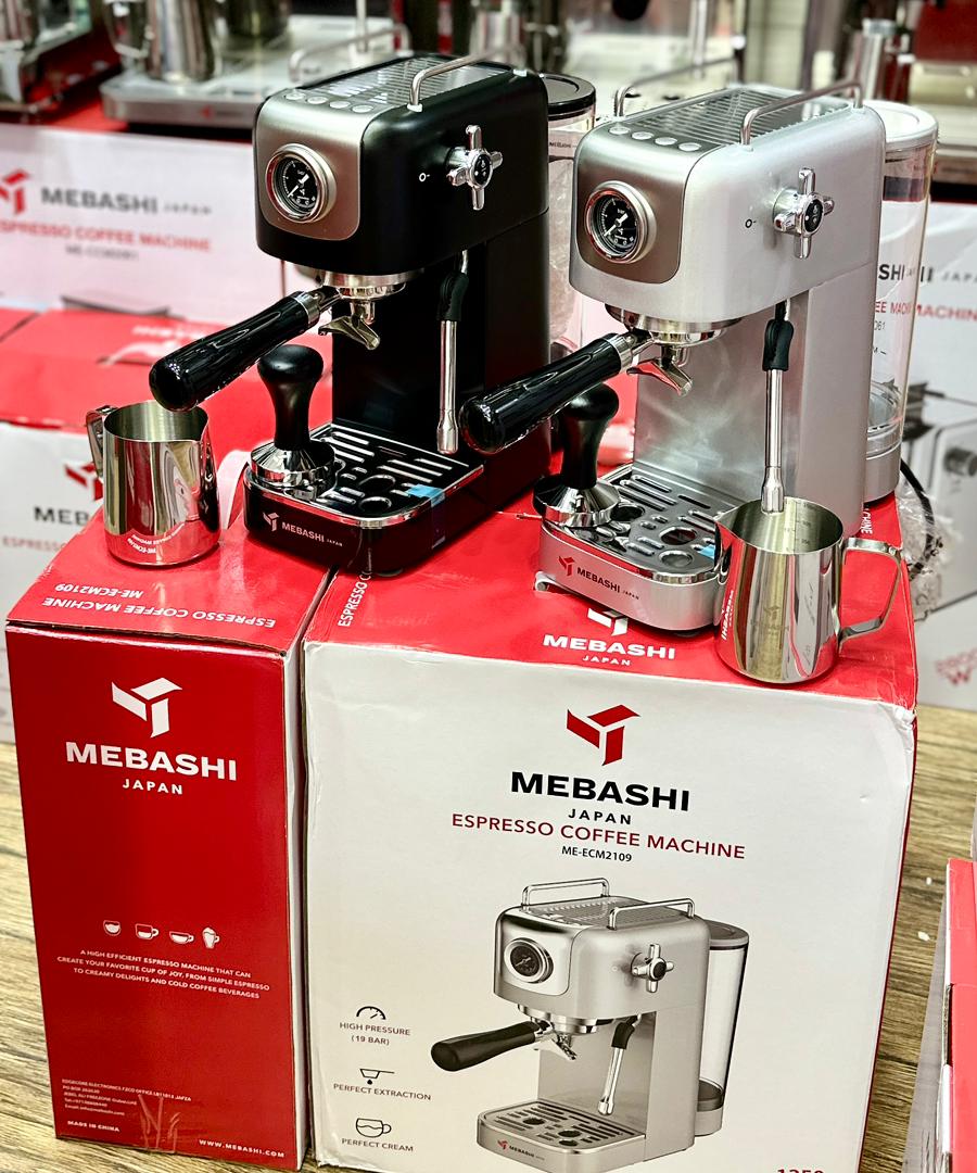 اسپرسوساز مباشی 2109 استیل؛ 19 بار، 1350 وات، بدنه استیل ضد زنگ، بویلر آلومینیوم و دسترسی جداگانه آب داغ.