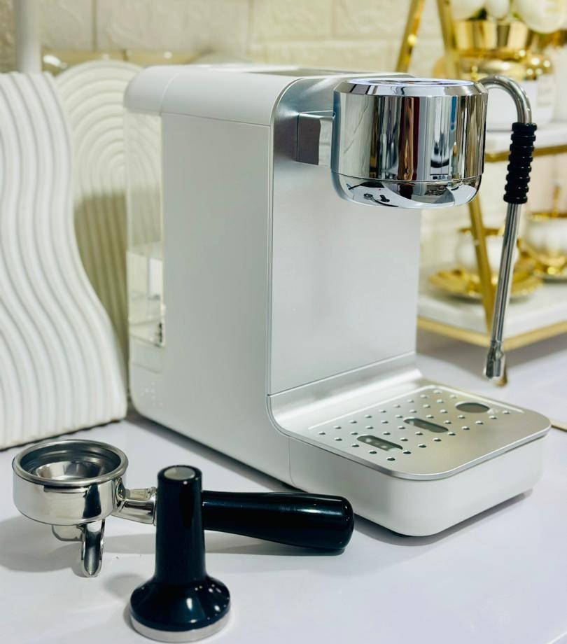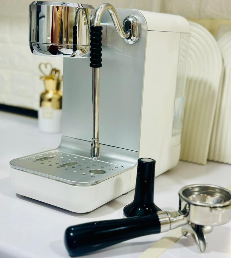 - طراحی سفید و ارگونومیک: رنگ سفید دستگاه (که در بازار کمتر رایج است)، جلوهای خاص و مدرن به آن میبخشد. قابلیت تنظیم ارتفاع خروجی قهوه نیز باعث میشود بتوانید از انواع فنجانهای کوچک و لیوانهای بلند به راحتی استفاده کنید و از پاشیدن قهوه جلوگیری شود.