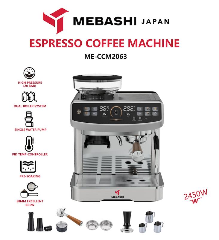 اسپرسوساز مباشی مدل ME-CM2063: حرفهای با بویلر دوگانه، آسیاب داخلی و توان 2450 وات
