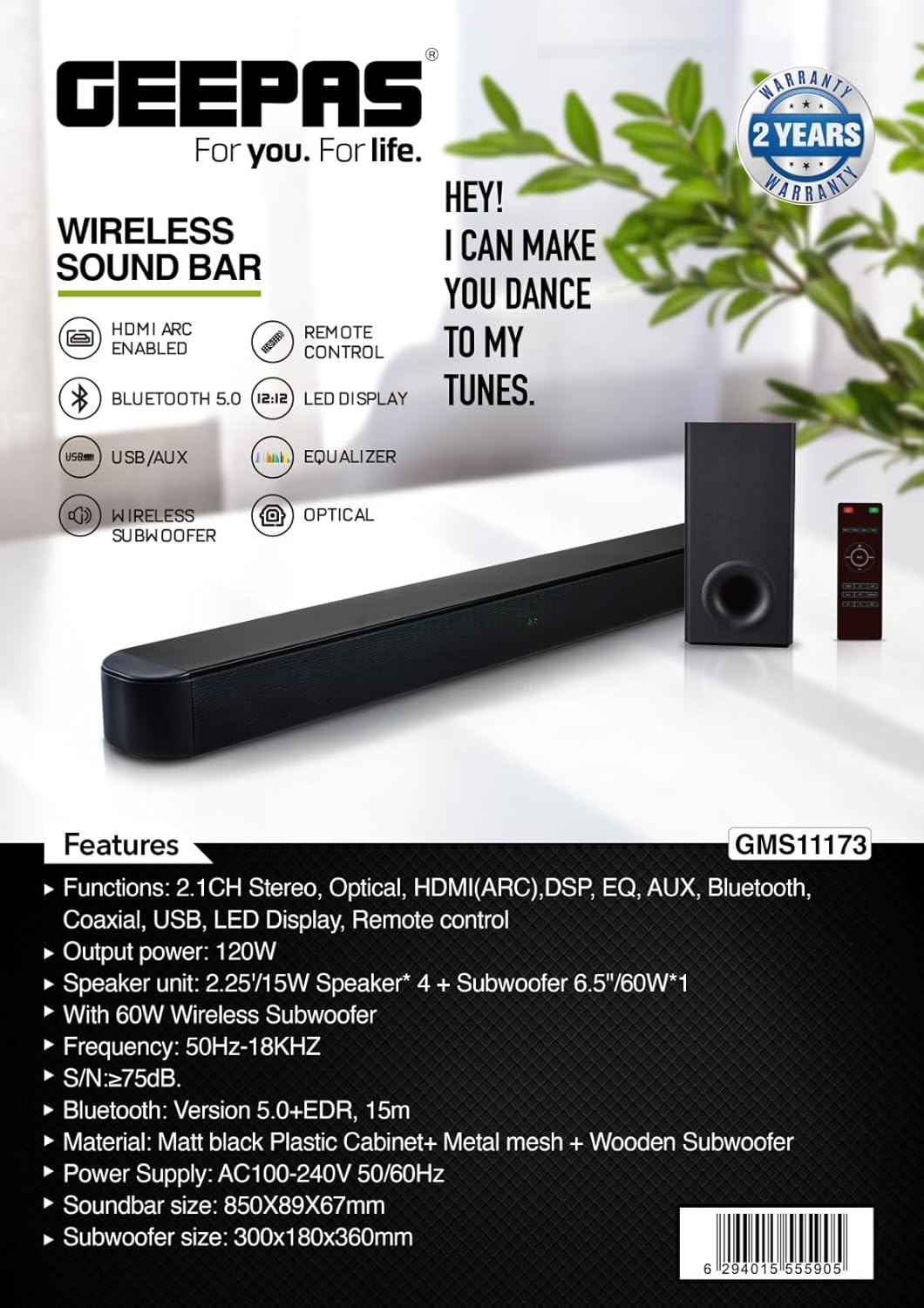 سیستم صوتی ساندبار جیپاس مدل GMS11173 بر پایه اجزای با کیفیت طراحی شده است تا وضوح و عمق صدا را تضمین کند.