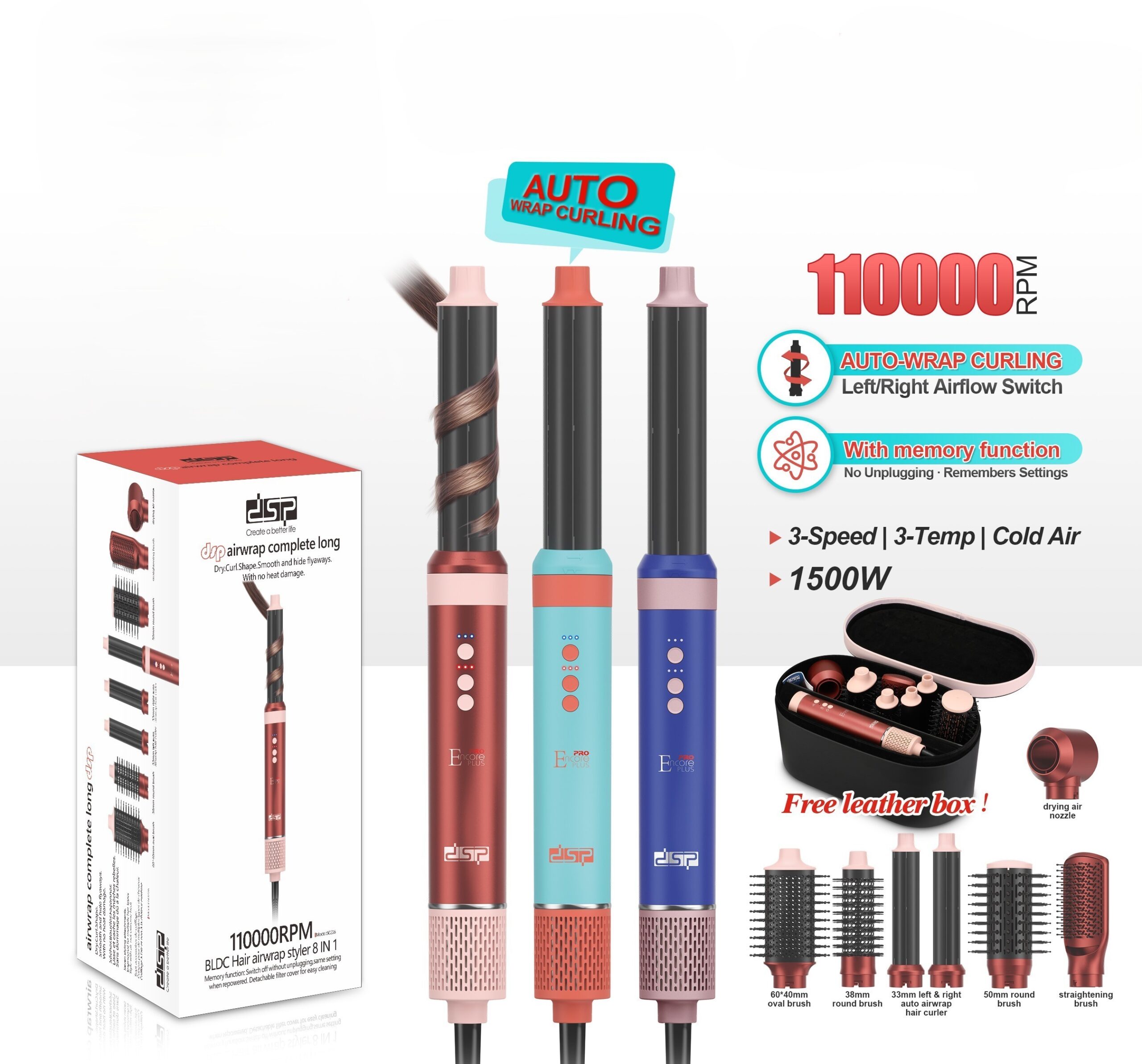 ست استایلر موی دی اس پی مدل 50226 با فناوری هوای گرم، موتور BLDC فوقالعاده سریع، شامل 8 سری برای استایلهای مختلف. فرکننده خودکار، 3 تنظیم دما و قابلیت حافظه.