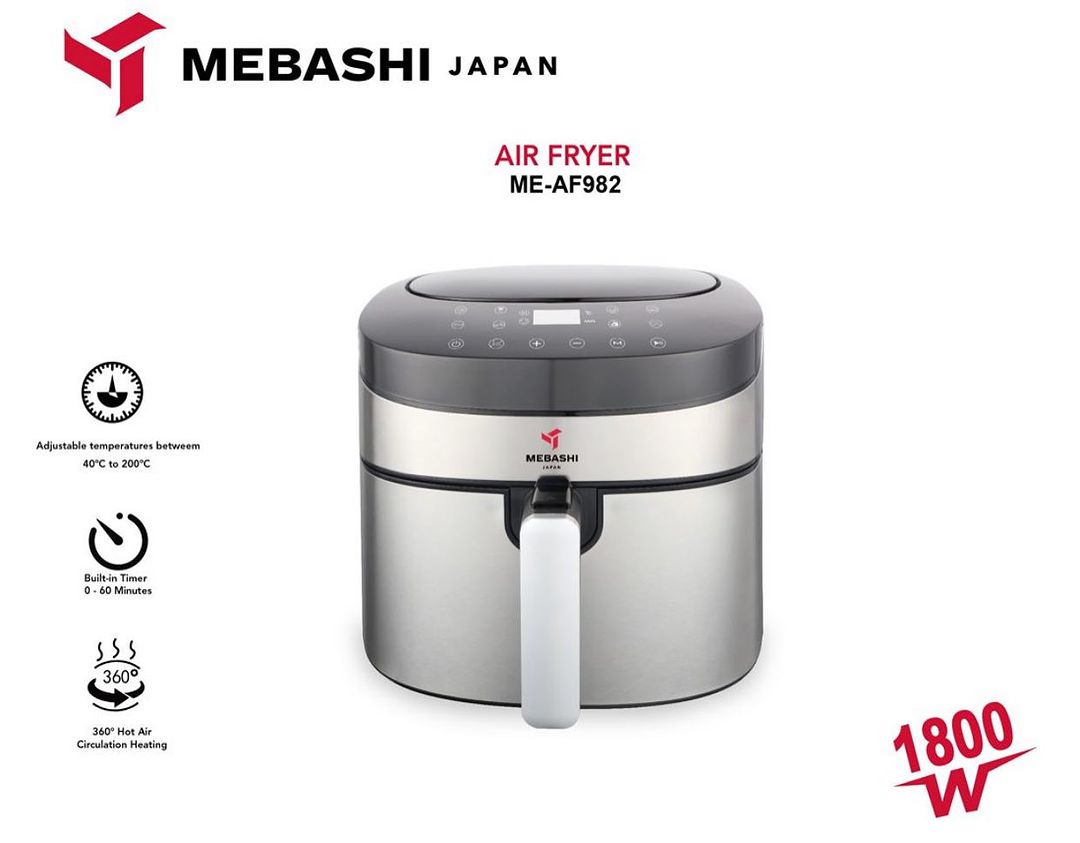 سرخ کن مباشی 982؛ بدون روغن، ظرفیت 7.2 لیتر و توان 1800 وات. ایدهآل برای خانواده، با تنظیم دمای 80 تا 200 درجه.