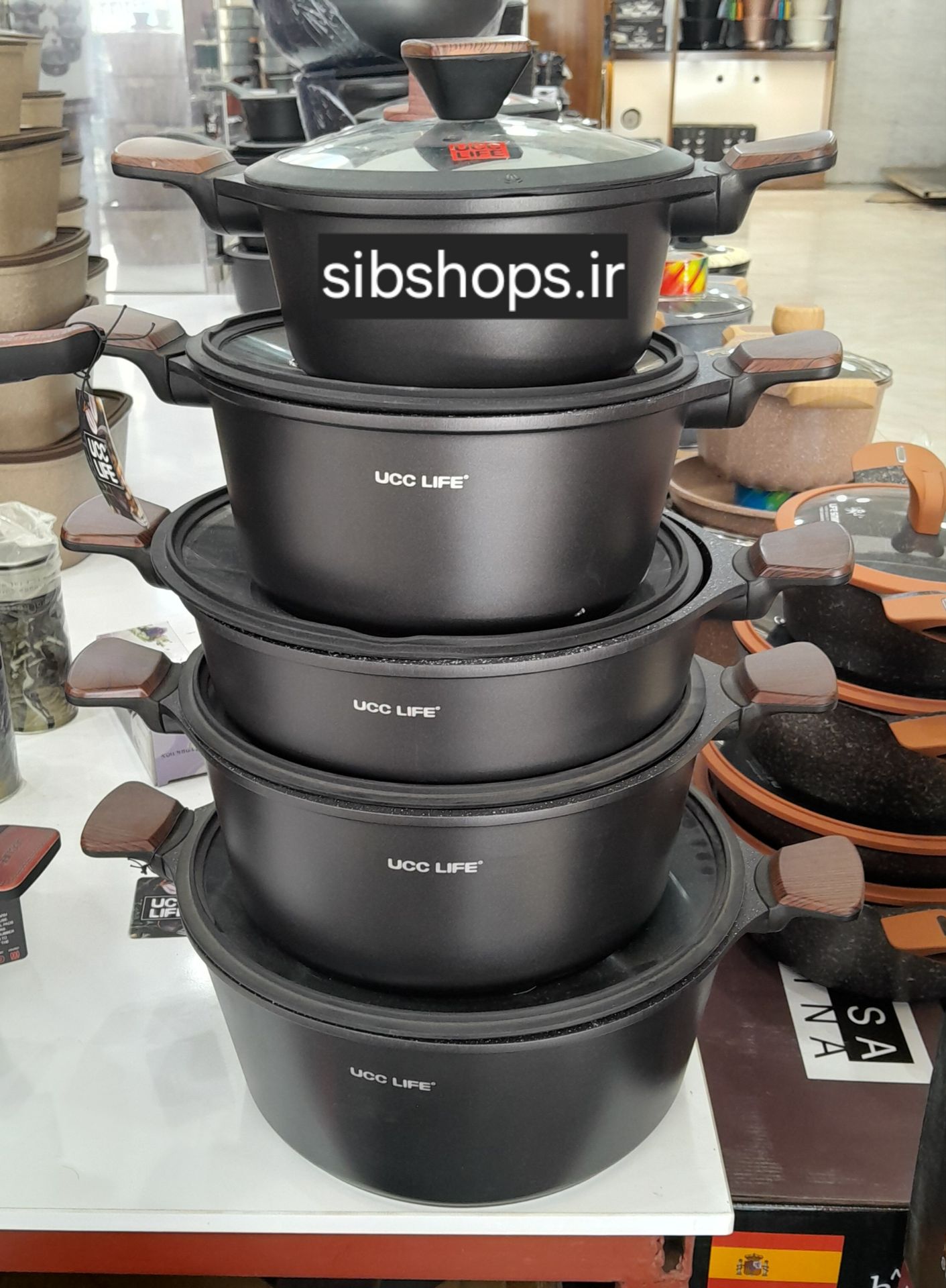 ⚫️ سرویس قابلمه 10 پارچه چدن گرانیت UCC Life : چدن سوپر گرانیت با درب پیرکس نشکن و طراحی آلمانی