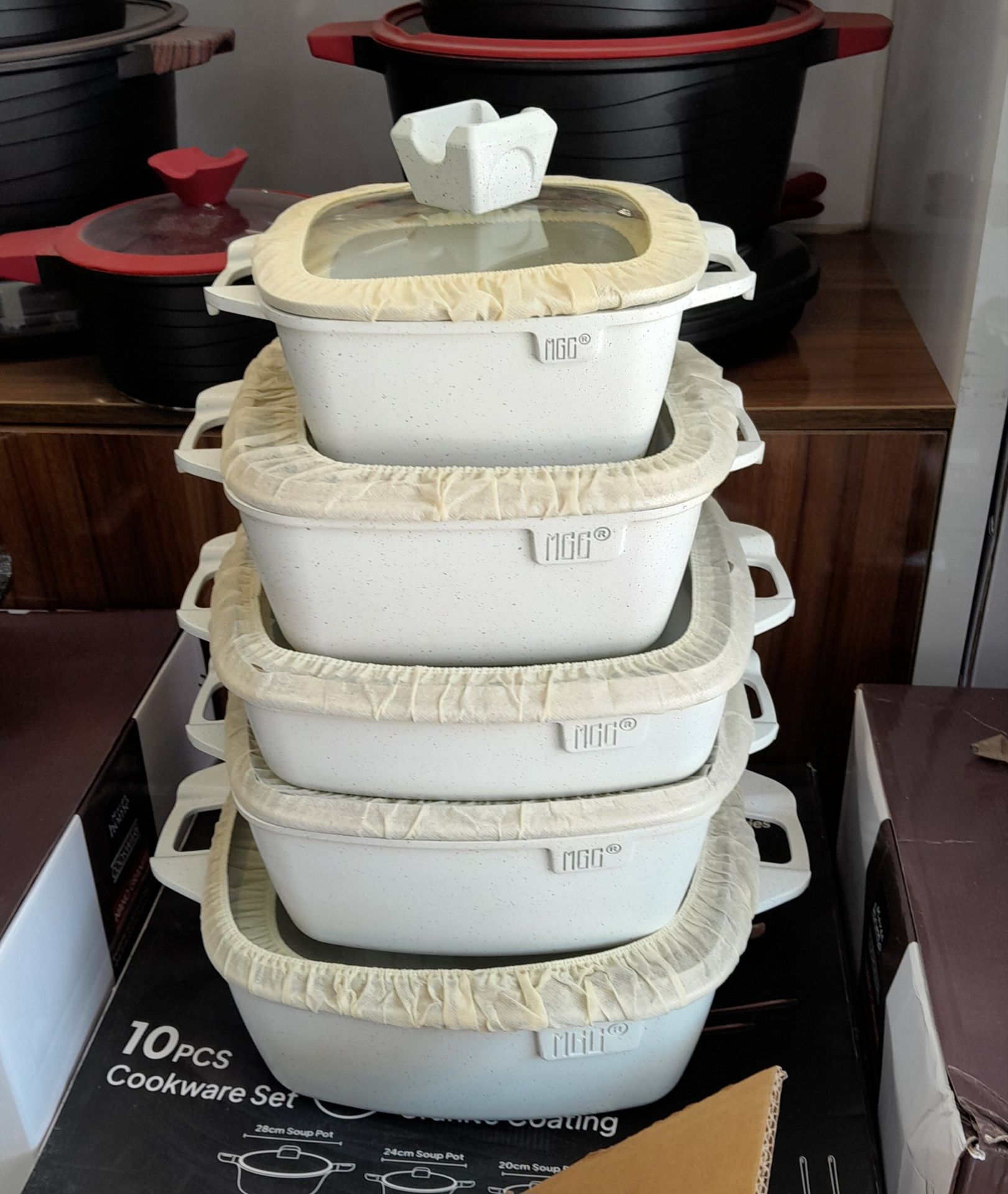 🍳 سرویس قابلمه 10 پارچه MGC گرانیتی مربعی: ضدخش، نچسب و دارای شعله پخشکن